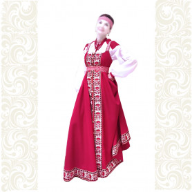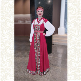 Сарафан с блузой «Дарина» выполнен в красном цвете в традиционном русском стиле. Плотный матовый габардин не мнется, не блестит под софитами.