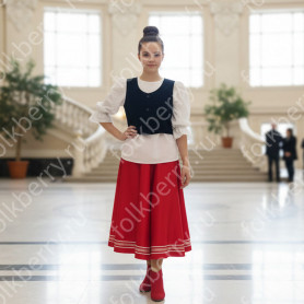 Изделие комбинированное, выполнено из ткани двух цветов – основной и дополнительной красной детали по низу рукава и рубахи.