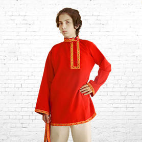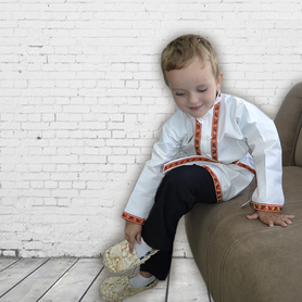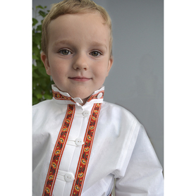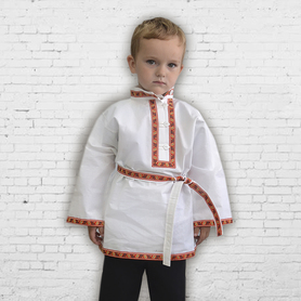 Косоворотка Оберег - ценный символический подарок мальчику или мужчине. Косоворотка "Оберег" сшита в традициях русской культуры и украшена декором из славянских знаков благополучия, процветания, здоровья, силы и удачи. Красный цвет декора также имеет символическое значение. В комплект входит пояс-кушак.
