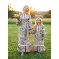 Фасон платья очень удачный и хорошо подходит всем покупательницам: горловину можно регулировать, рукав реглан хорош для всех типов фигур, удлиненный и немного расклешенный силуэт. немного завышенная талия. Длинный декорированный пояс в комплекте.  Дополнительный факт - фасон платья "Берегиня" хорошо подходит крупным и полным женщинам.
