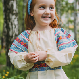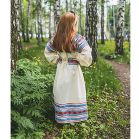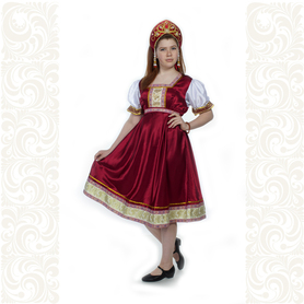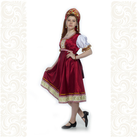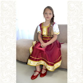 Платье «Дмитра» отрезное по талии, рукав реглан, юбка-почти солнце, длиной немного ниже колена. В комплект входит пояс. Важно, что декор платья выдержан в славянском стиле. Это платье - современное прочтение народных традиций. Женственное, удобное и нарядное, оно дарит ощущение радости и праздника. По стилю замечательно подходит для тематических праздников в детских учебных заведениях, по фасону и яркости цветов отлично подойдет для танцевальных коллективов. как правило, дети не стесняются надевать его ( в отличии от длинного русского сарафана ) Платье выполнено из немнущейся, матовой ткани "габардин" символичных для славян цветов ( красного, синего, зеленого, бордового).
