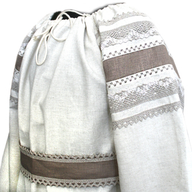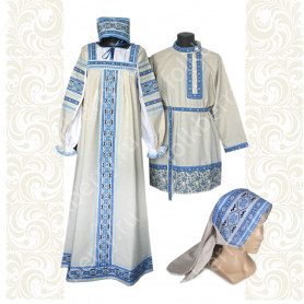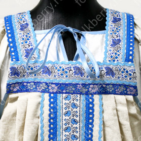 Декор платья - жаккардовая тесьма со славянскими символами. Талия немного завышена, пояс в комплекте.