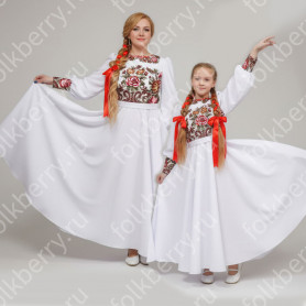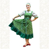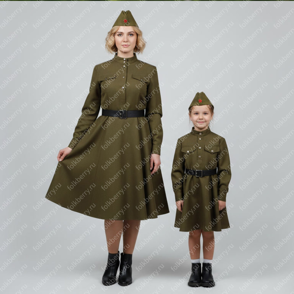 Платье «Солдатка» отрезное по талии, рукав реглан, юбка-почти солнце, длиной немного ниже колена. В комплект входит пояс. Важно, что декор платья выдержан в славянском стиле. Это платье - современное прочтение народных традиций. Женственное, удобное и нарядное, оно дарит ощущение радости и праздника. По стилю замечательно подходит для тематических праздников в детских  учебных заведениях, по фасону и яркости цветов отлично подойдет для танцевальных коллективов.  как правило, дети не стесняются надевать его ( в отличии от длинного русского сарафана ) Платье выполнено из немнущейся, матовой ткани "габардин" символичных для славян цветов ( красного, синего, зеленого, бордового).