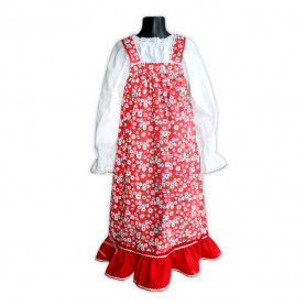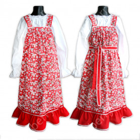 Материал: лен – 70%, хлопок – 30%. Ткань качественная, хорошей плотности, не просвечивает, красивого цвета. Возможны комбинированные модели, со вставкой, отличающейся по цвету, и машинной вышивкой.