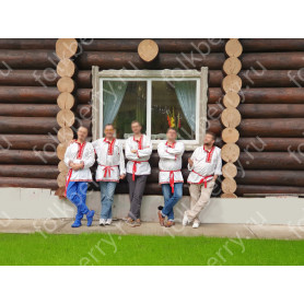 Рубаха мужская «Истоки» с коротким, втачным рукавом выполнена из белого льна. Ворот, рукава, низ изделия оснащены декором из жаккардовой тесьмы с традиционными славянскими обережными узорами. Модель комплектуется поясом (кушаком) из ткани с тесьмой.