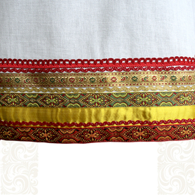 Материалы: лён, жаккардовая тесьма с обережными символами