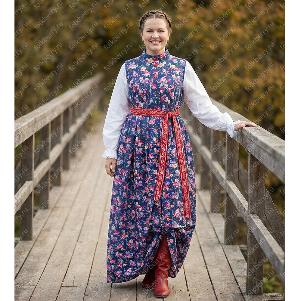 Сарафаны с блузой Русь сарафанная. Самара, хлопок, синий — скромная элегантность русской традиции. Носите Россию с достоинством!