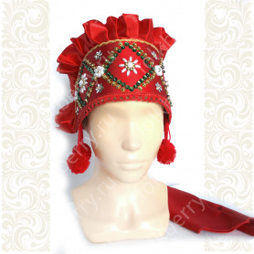 В комплект входит очелье  пояс с кисточками, выполненные в технике ткачества.