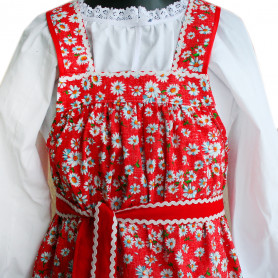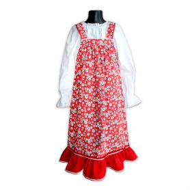 Сарафан с блузой «Дарина» выполнен в красном цвете в традиционном русском стиле. Плотный матовый габардин не мнется, не блестит под софитами.
