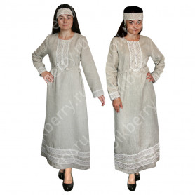 Блуза сшита из хлопка, по рукавам красиво декорирована жаккардовой тесьмой. Горловина регулируется по глубине при помощи завязок.
