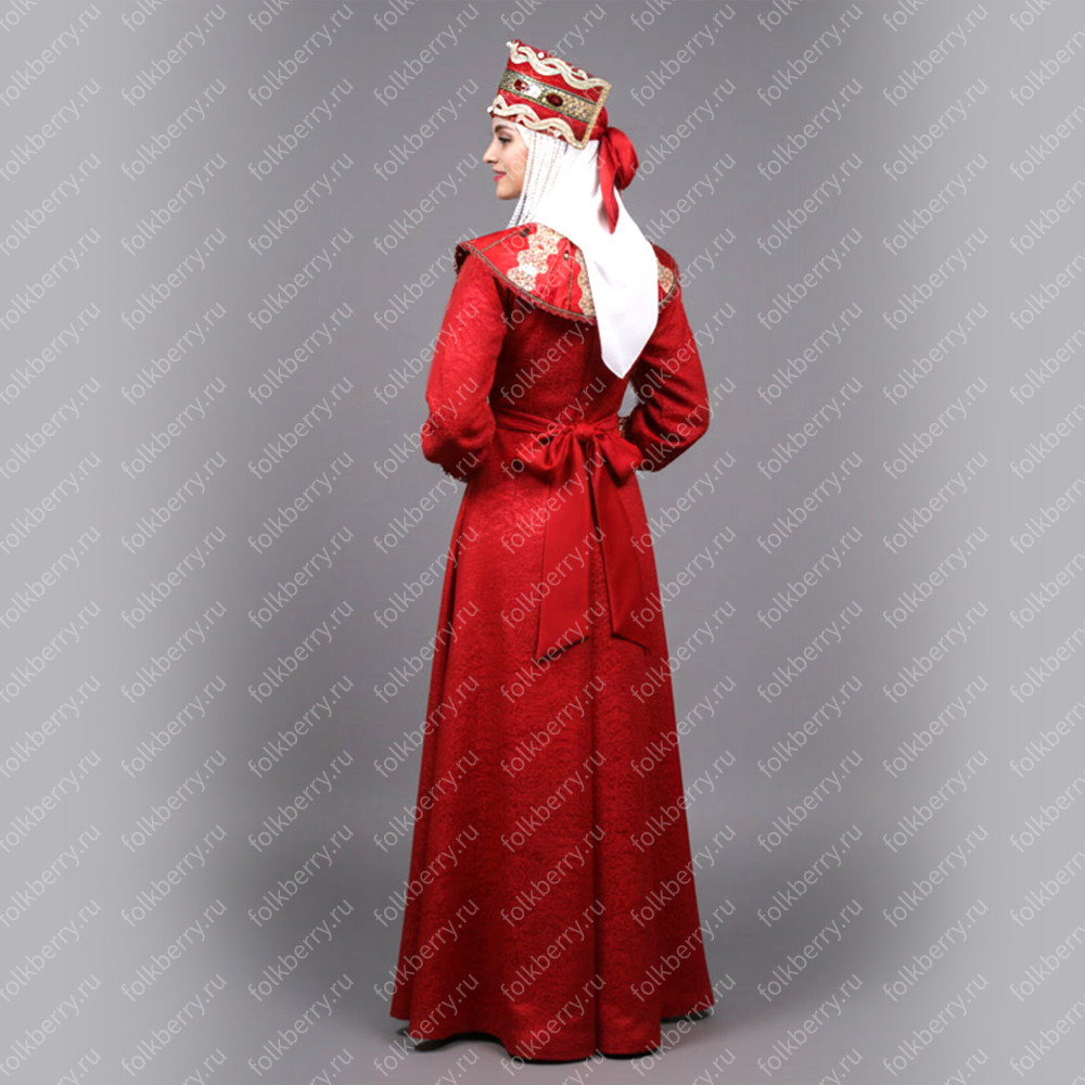 Женский княжеский костюм выполнен в традициях русского княжеского костюма 17-19 веков.